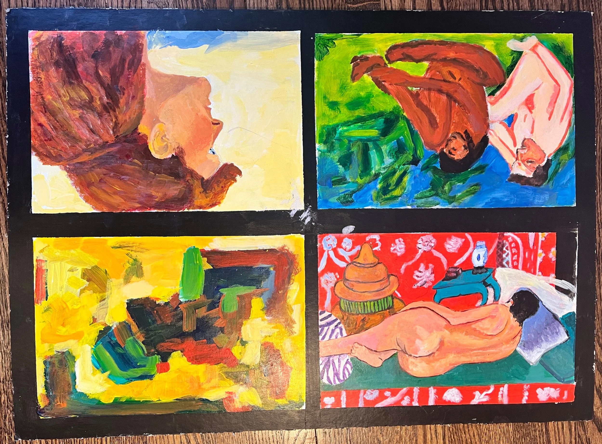 After my freshman year I was a bit tired of the work I was doing and I wanted to let out alot of emotions. Being so inspired by Henri Matisse and Pablo Picasso I decided to set up a still life in my dorm room and make about 30 paintings in one sitting. Here is about ten of them.