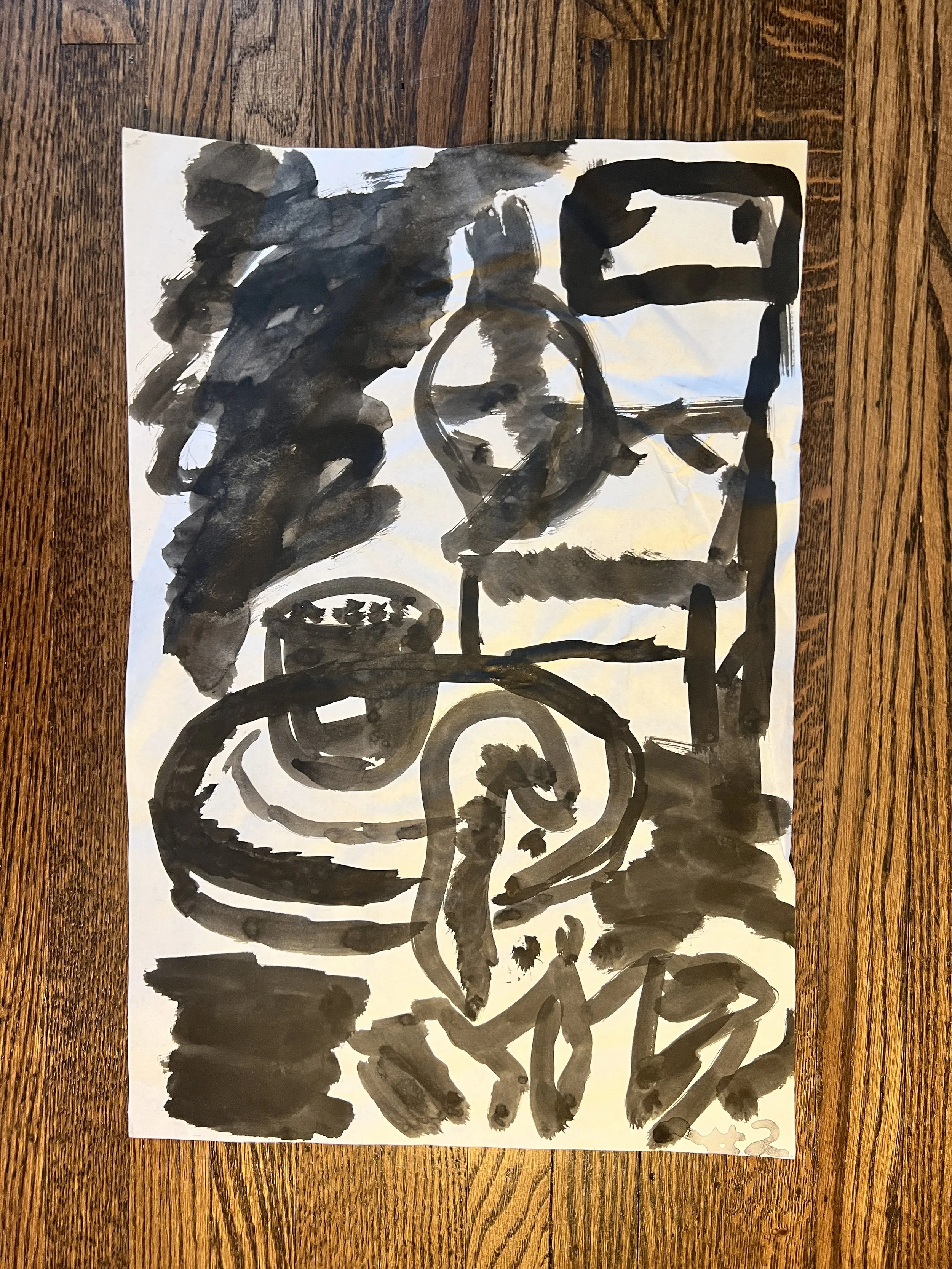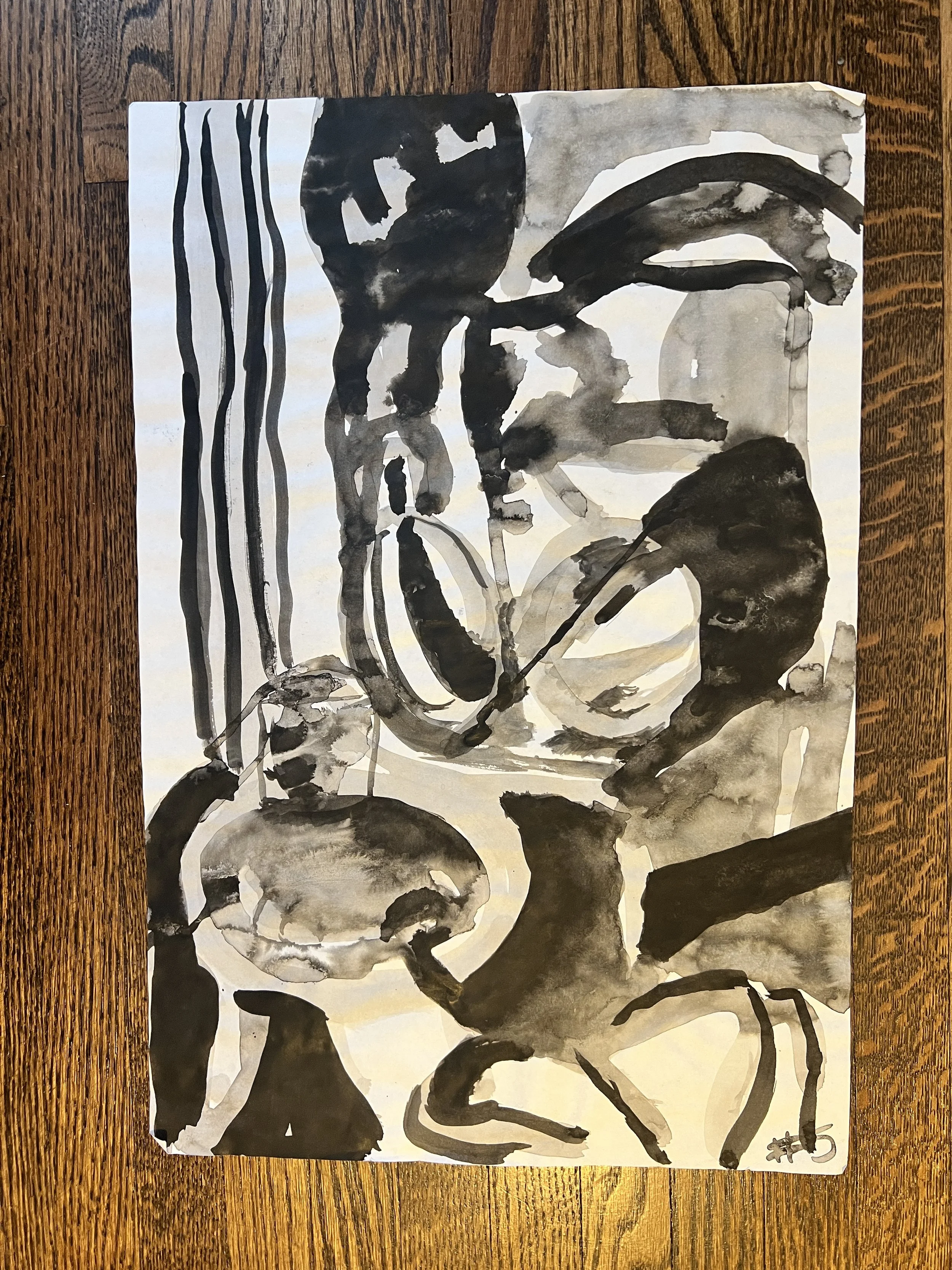 Overall, I wanted each still life drawing to be fast, the same way Pablo Picasso made his paintings, and I tried to emulate the brush strokes of Henri Mattese. Each piece is not detailed to show how the brush would move to emulate a Henri Matteese painting. Because this is an Ink and paper drawing, I wanted to have some moments where the ink is blurred because I do feel Heni Mattese does mix on canvas a bit, at least in some of my favorite paintings. After doing many drawings, I realized the series was too much like Henri Matisse, so I added the blue that is similar to Pablo Picasso's blue period. However, the blue wasn’t dynamic enough, and when Henri Mattese did his Morracan series, he utilized red. Nonetheless, I felt the red would overpower the piece. However, I felt the yellow cat with the redfish was a great piece to pull from and accomplish my goal without it competing with one another.